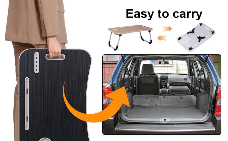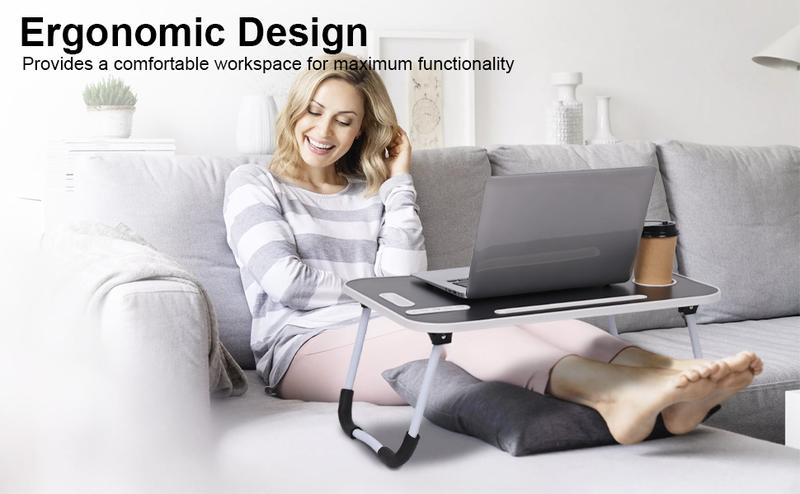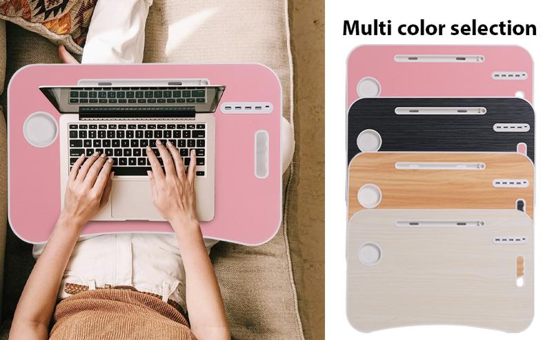 Work, study, or relax in total comfort with this multi-functional laptop desk for bed and couch. Featuring a built-in USB charging port, storage drawer, and cup holder, this foldable desk is designed to make working, reading, or browsing effortless—whether you’re in bed, on the sofa, or even outdoors.